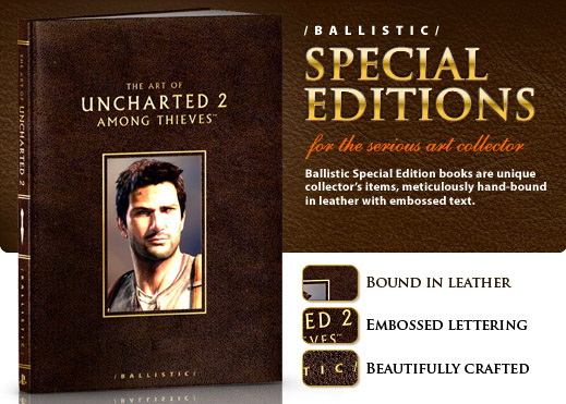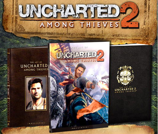 Ко многим популярных играм выходят артбуки, притом некоторые из них обладают высоким качеством. И  Naughty Dog совместно с Ballistic Publishing выпустил  качественный артбук для Uncharted 2: Among Thieves в трех вариациях. В нем целых 272 страницы, потому получается целая книга. Видимо, ребята решили, что игра достойна быть запечатлена на более высоком уровне, чем просто мелкий глянцевый журнал. В этом чудесном издании можно будет найти концепты игры, эскизы героев, монстров, окружающего мира, пейзажей, задумки разработчиков,  которые не попали в игру, а так же море всего, что никогда бы не увидел простой смертный.