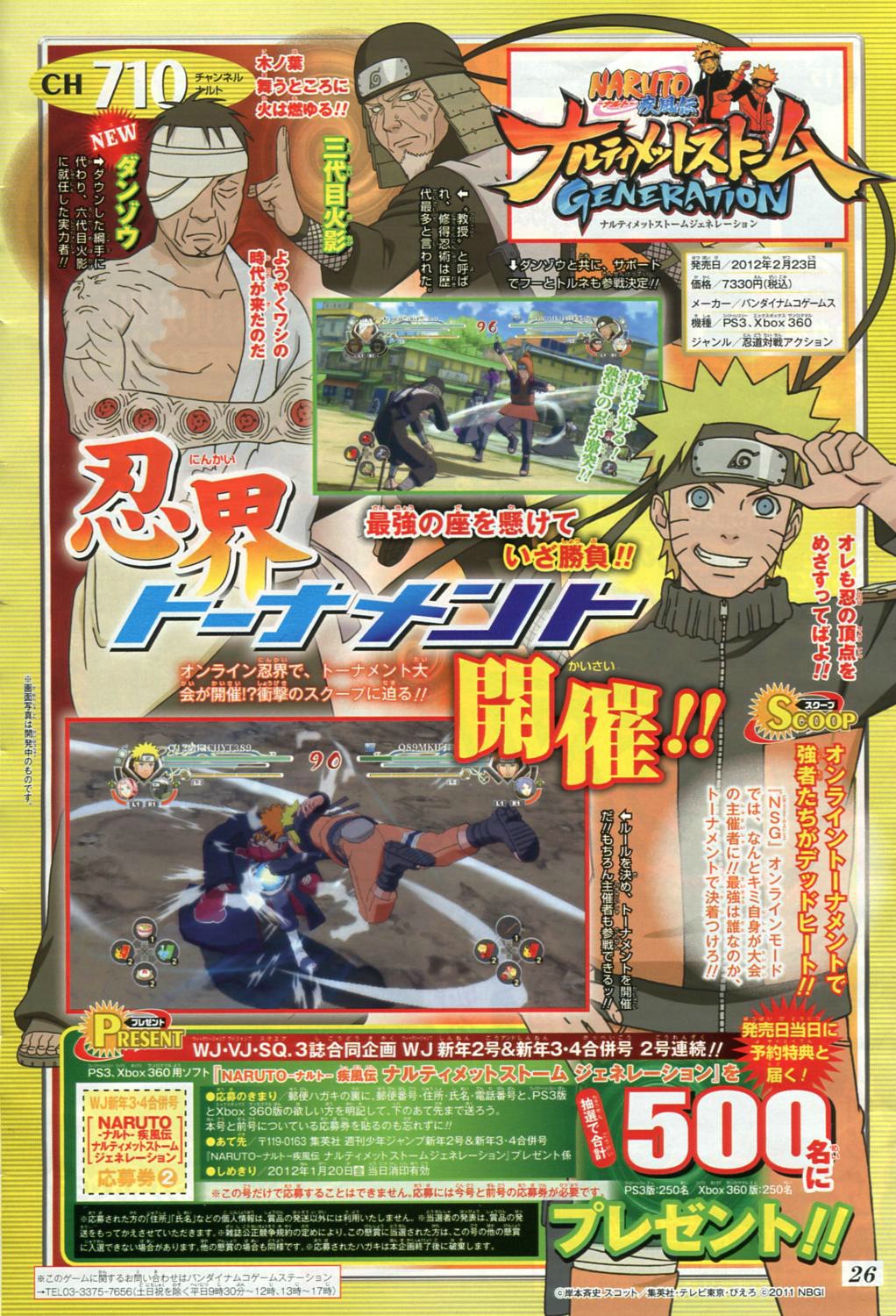 Кроме новой порции геймплея в сети появился свеженький скан, демонстрирующий нам двух теперь официально подтвержденных бойцов и двоих помощников (support): Данзо с поддержкой в виде Торуне и Фу, а также Третий Хокаге (Хирузен Сарутоби).