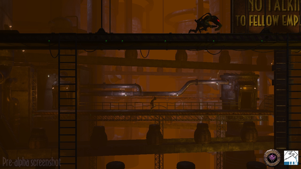 “В оригинальной игре на пятом экране был спящий Слиг (Slig). Когда вы заходили в экран, он просыпался. Чтобы сбросить его с хвоста, вы просто уходили на предыдущий экран. Так как мы более не имеем дела с флип-экранной системой, то нам пришлось сделать так, чтобы он имел счетчик. Скажем, например, что он ходит в течение 10 секунд, и если вы не двигались, и он ничего не слышал ничего, то Слиг снова засыпает.